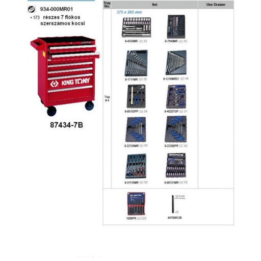 173 részes, 7 fiókos szerszámoskocsi 934-000MR01