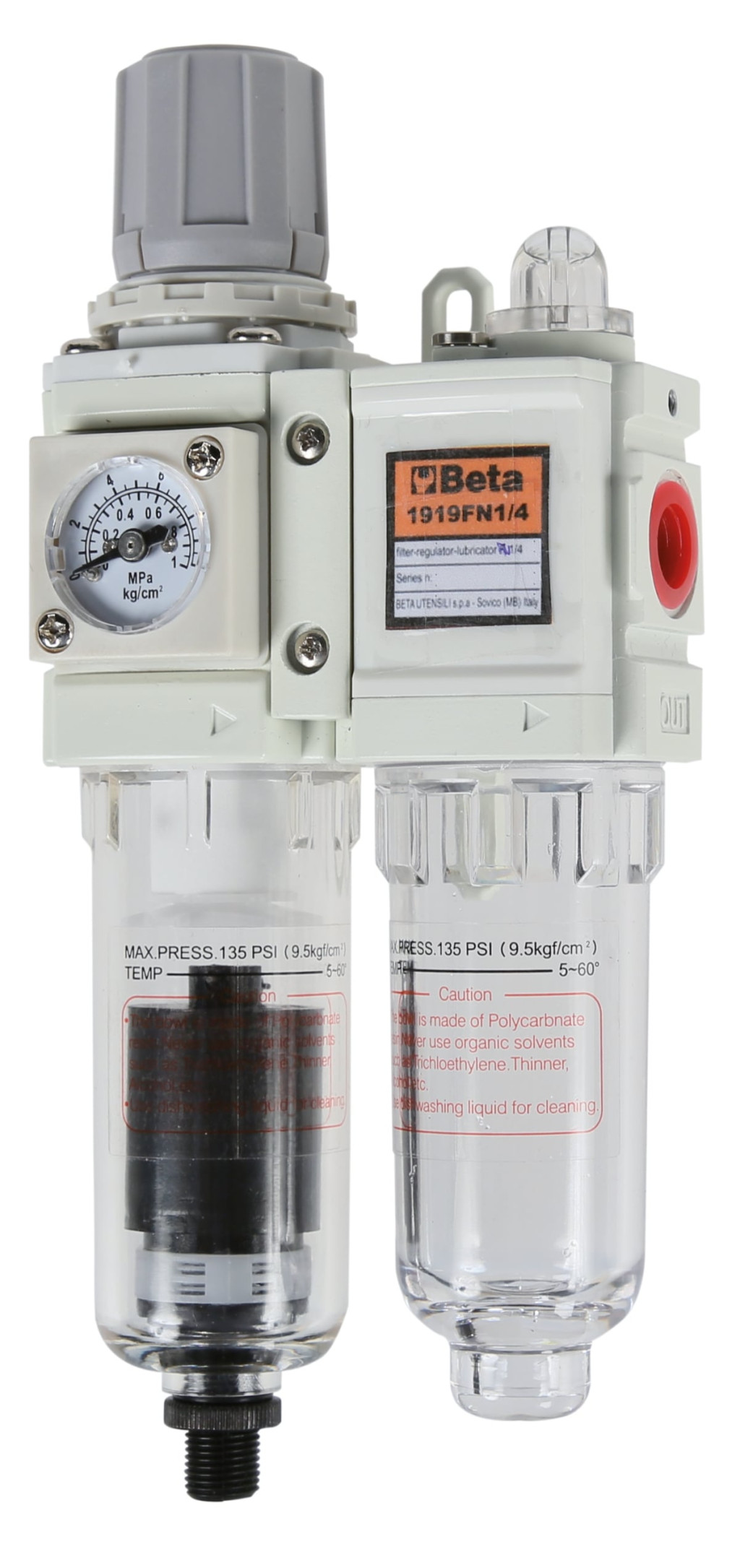 • Az aggregát tartozékai: nyomáscsökkentő zárószerkezettel, levegő/olajkeverő olajszabályozóval, polikarbonát tartály félautomata nedvességleválasztó szeleppel, analóg manométer dupla mérőbeosztással (bar-psi) és tartókengyel