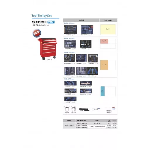 325 részes, 7 fiókos szerszámoskocsi 934-011MRV