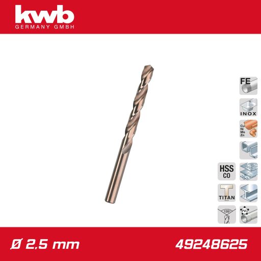 49248625 | Csigafúró 2,5 mm HSS-E Co5 DIN 338 Profi 5% Cobalt -"M3"- KWB