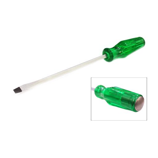 Üthető markolatú hosszú lapos csavarhúzó, ergonomikusan kialakított műanyag markolattal