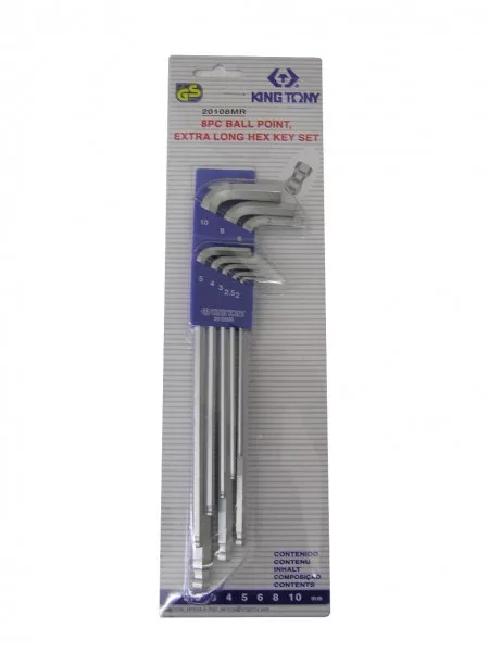 8 részes gömbvégű extra hosszú imbuszkulcs készlet 2-10mm 20108MR