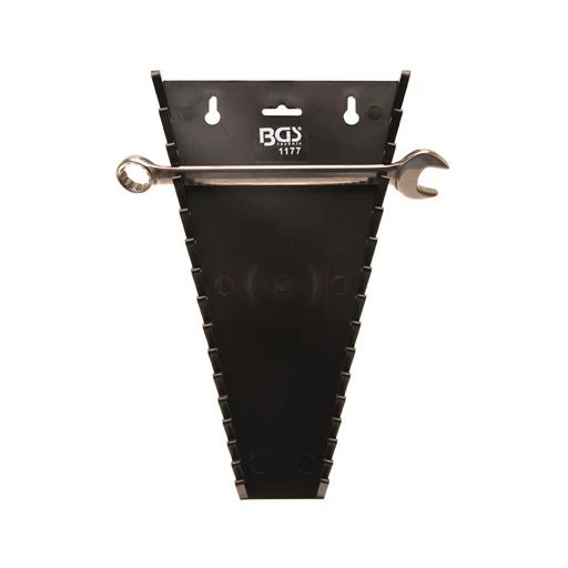 Falra szerelhető villáskulcs tartó 15 db kulcsnak. Mérete: 297 x 180 x 28 mm