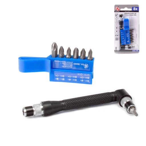 9-20805 | Csavarhúzó bit hajtó derékszögű + 7 db duplavégű 1/4" bitek + Tok -BGS