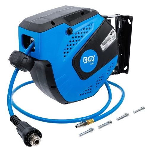 9-3297 | Levegőtömlő csévélődobbal 10 méteres 8 x 12 mm - falra szerelhető - BGS