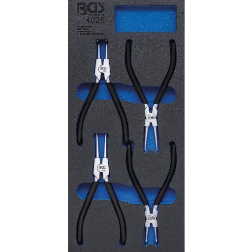 9-4025 | Tálcás seeger fogó készlet 4 db-os 180 mm-es 1/3 - EVA tálcás - BGS