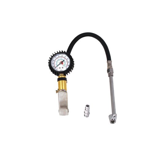 Gumiabroncs levegős nyomásmérő műszer, gyorscsatlakozó fejjel kiegészítve. Minőségi anyagokból összerakva, mely megkönnyíti a mindennapos használatot.