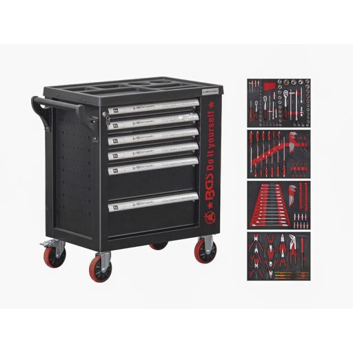 Szerszámos kocsi gyári-felszerelt 158 db-os 6 fiókos szekrény BGS Do it
