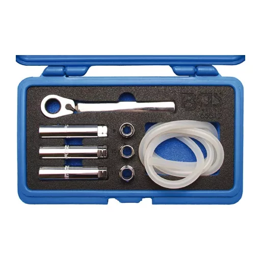Ez a különleges átmenős kialakítású racsnis kulcs és a az "átmenős" 09-es, 10-es és 11 mm-es hosszú dugófejek könnyen lehetővé teszik hidraulikus kuplung légtelenítését.