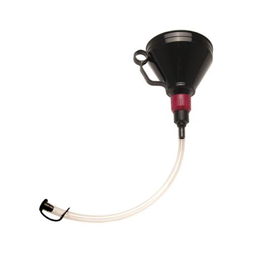 Tölcsér alján elfordítható ON-OFF kapcsolóval szerelt és az átlátszó cső végén vakdugó kupakkal ellátott.