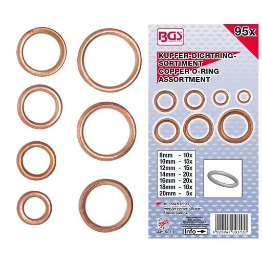 9-9313 | Tömítőgyűrű készlet réz  95 db-os rézalátét metrikus 8-20 mm