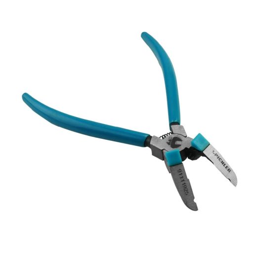 Döntött kivitelű, extra vékony patentkiszedő fogó kifejezetten a kényes helyeken található műanyag rögzítő patentek kiszerelését szolgálja.