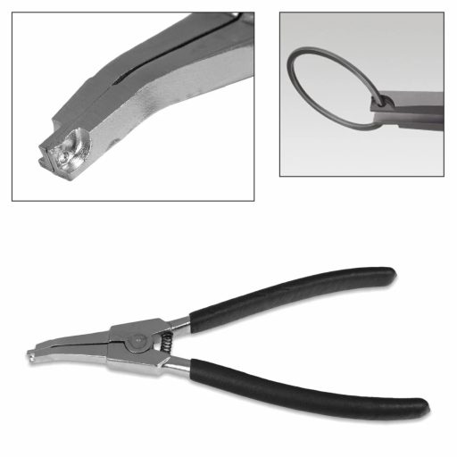 Enyhén hajlított (30°) speciális külső seeger fogó fül nélküli gyűrűhöz.