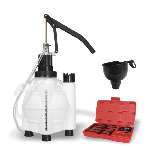 9.5 liter-es váltó-olaj kézi működtetésű feltöltő készlet 8 db adapterrel előkészítve automata váltókhoz (ATF), mely