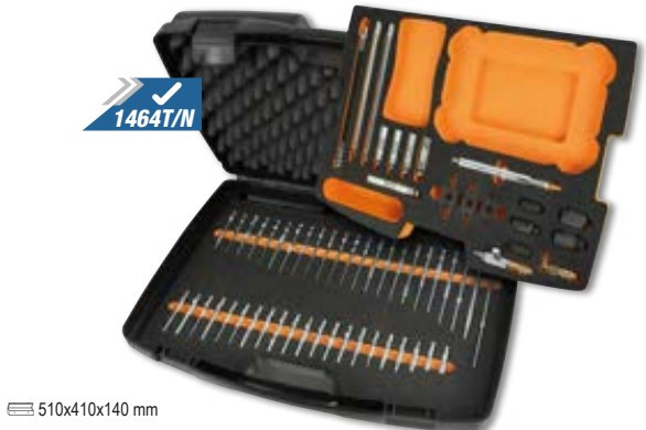 A Beta 1464CBD/N adapterkészlete lehetővé teszi az 1464T és 1464T/N digitális teszterek csatlakoztatását benzines és diesel motorok kompresszióméréséhez.