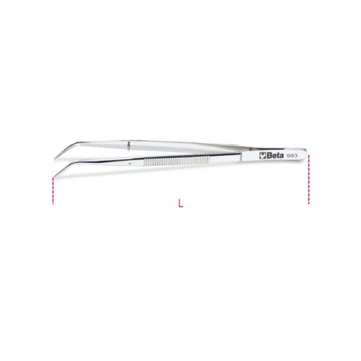 BETA 993 | 993 145 Hajlított végű csapos csipesz lekerekített fogazott heggyel, rozsdamentes acélból, polírozott