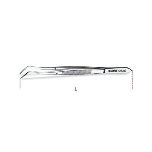 BETA 993G | 993G Hajlított csapos csipesz sarkított, lekerekített, fogazott heggyel, rozsdamentes acélból, polírozott