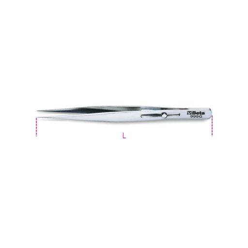 BETA 999G | 999G Egyenes csipesz, nem mágneses, saválló, záró-szerkezettel, tűhegyes, rozsdamentes acélból, polírozott