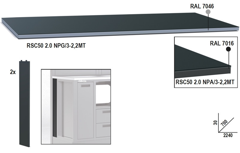 BETARSC50 2.0 NPA/2-2,2MT|RSC50 2.0 NPA/2-2,2MT Fémlemez munkalap, 2,2 m széles, munkapadhoz, az RSC50 2.0 műhelyberendezés összeállításhoz