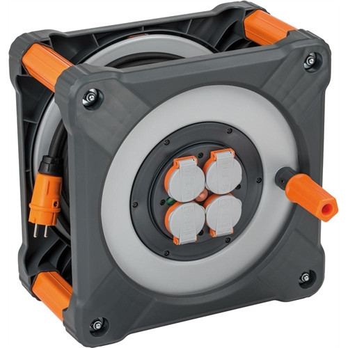 Kivitel: A ház és a dob anyaga egy különösen ütközés- és ütésálló műanyag-gumi keverék. Mind a négy oldalán stabilan áll és körkörös felborulás elleni védelemmel rendelkezik, 4 db védőérintkezős csatlakozó aljzat, fröccsenő víz ellen védett, önzáródó fedéllel. Robusztus hordozó fogantyúk és dugvillatartó mind a négy oldalon. A dobtest -25 °C hőmérsékletig hidegtűrő. A kábeldob túlmelegedés és túlterhelés elleni védelemmel rendelkezik. Az ellenőrző lámpa túlmelegedés és túlterhelés esetén világít. Nagy, stabil behajtható forgatókar a kábel könnyű fel- és lecsévéléséhez.