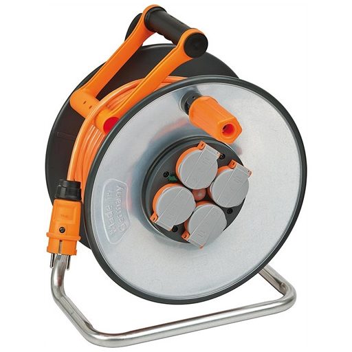 Kivitel: Acéllemez dobtest, az elülső és hátsó oldalon védő szigeteléssel, stabil horganyzott hordozó vázban, 4 védőérintkezős csatlakozó aljzattal, amelyek fröccsenő víz ellen védettek és önzáródó fedéllel vannak felszerelve. A dobtest -25 °C hőmérsékletig hidegtűrő. A kábeldob túlmelegedés és túlterhelés elleni védelemmel rendelkezik. Az ellenőrző lámpa túlmelegedés és túlterhelés esetén lép működésbe. A „cablepilot“hordozó fogantyú tökéletes kábelvezetést biztosít -mindkét irányban leng és kényelmes hordozást és felakasztást tesz lehetővé. A nagy, stabil behajtható forgatókarral a kábel biztonságosan fel- és lecsévélhető.