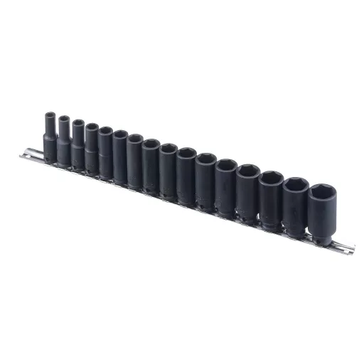 16 darabos 3/8"-os csatlakozású hosszított gépi dugókulcs készlet 7-22 mm