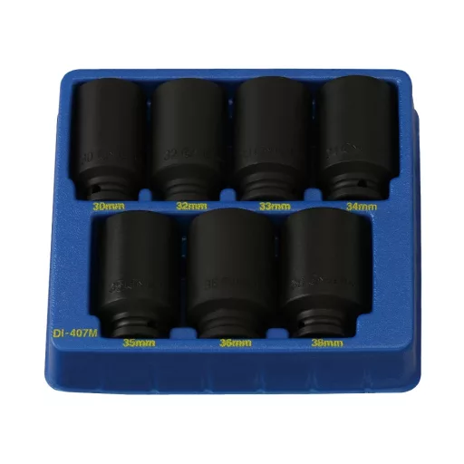 DI-407M | Tálcás Genius dugókulcs, gépi készlet 6 lapú hosszú 1/2" 7 db-os 30-38mm