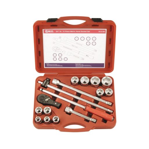 EU-615M | Dugókulcs készlet 3/4" 6 lap 22-50 mm 15 db-os Genius