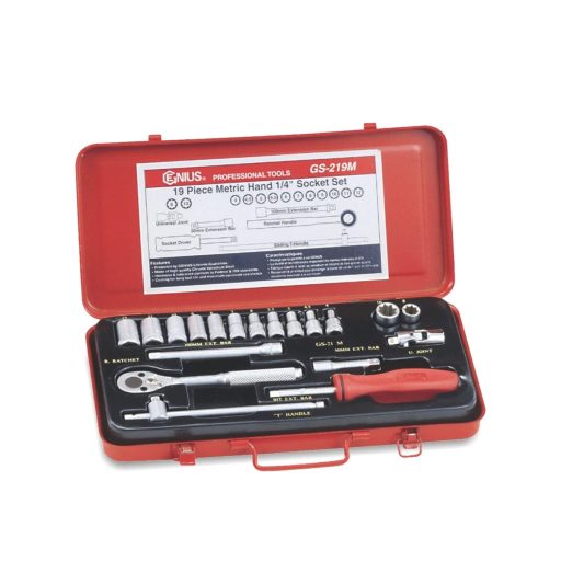GS-219M | Dugókulcs készlet 1/4" 6 lap 4-12 mm 19 db-os Genius