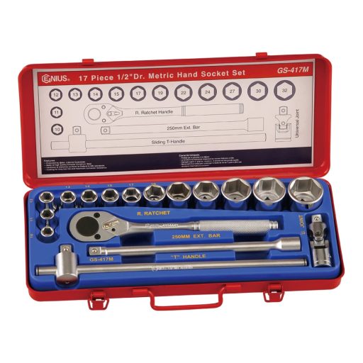 GS-417M | Dugókulcs készlet 1/2" 6 lap 10-32 mm 17 db-os Genius