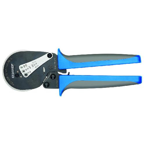 Automatikus keresztmetszet állítás 0,08-16,0 mm2 / AWG 28 - 5 beállítás nélkül, Alacsony kézi erő -30%-kal csökkentett a korábban ismert szerszámokhoz képest, Egységes 6 pontos precíziós krimpelés a hüvely teljes hosszában, Kinyitható pozitív zár a rögzítéshez teljes krimpelési folyamat