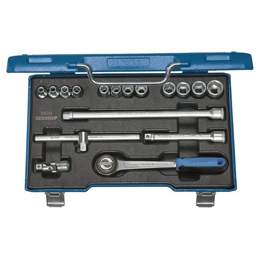 Gedore dugókulcs készlet, 3/8", 17 részes, hatszög, 6-19 mm (30 GMU-3)