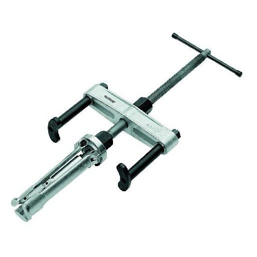 • Működésmód: Az ellentámaszt orsóját csavarja be a kihúzó szerszám szorító anyájába és vezesse be a perselybe a kihúzót. Az ellendarabot helyezze fel a motorblokkra. Az orsó forgatásával mindhárom pofa gyorsan és problémamentesen szétnyílik az újszerű terpesztő rendszer segítségével a persely pereme alá. Ezután húzza meg az ellentámasz anyáját.