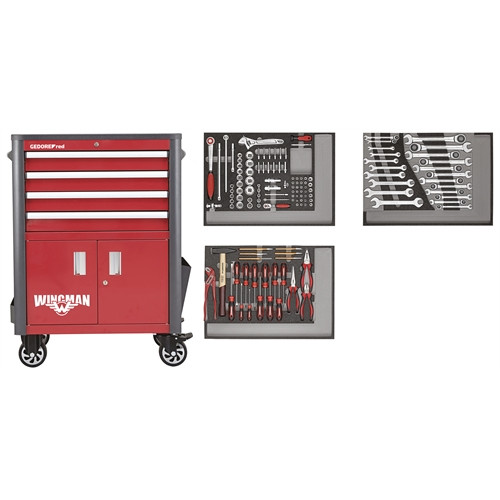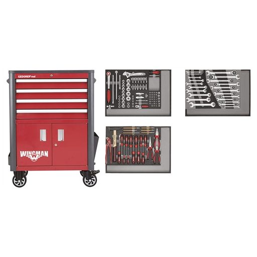 GedoreRed komplett szerszámkocsi WINGMAN szerszámokkal 129 részes 4 fiókos R22041004