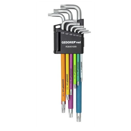 GedoreRed színes torxkulcs készlet tartóban T10-T50, 9 részes, hosszú (R36401009)