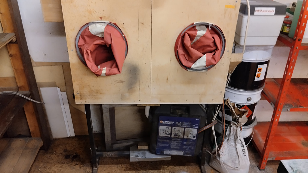 Homokfúvó szekrény (egyedi készítésű)Campbell Hausfeld homokfúvó tápegységgel