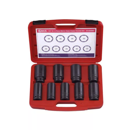 IS-609MD | Légkulcsfej készlet 3/4" 9 db 26-38 mm metrikus hosszú 6 l. Genius