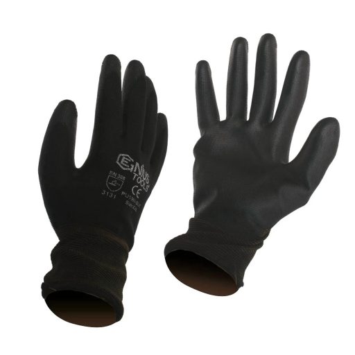 Fekete színű, tenyéren és ujjbegyen mártott szerelőkesztyű