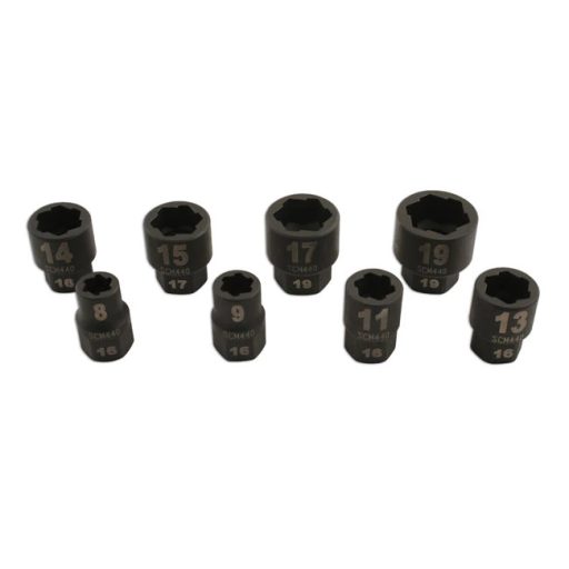 LAS-5966 | Csavarkiszedő készlet - sérült fejű csavarokhoz 8 db-os 8-19 mm 3/8"