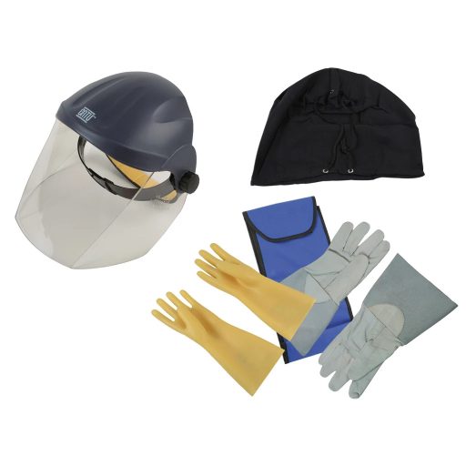 Munkavédelmi csomag melyben 1000V-os kesztyű pár, sisak, sapka, szütyőben állnak rendelkezésre