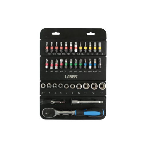 LAS-7310 | Dugókulcs és bit készlet 37 darabos 1/4" - Laser Tools