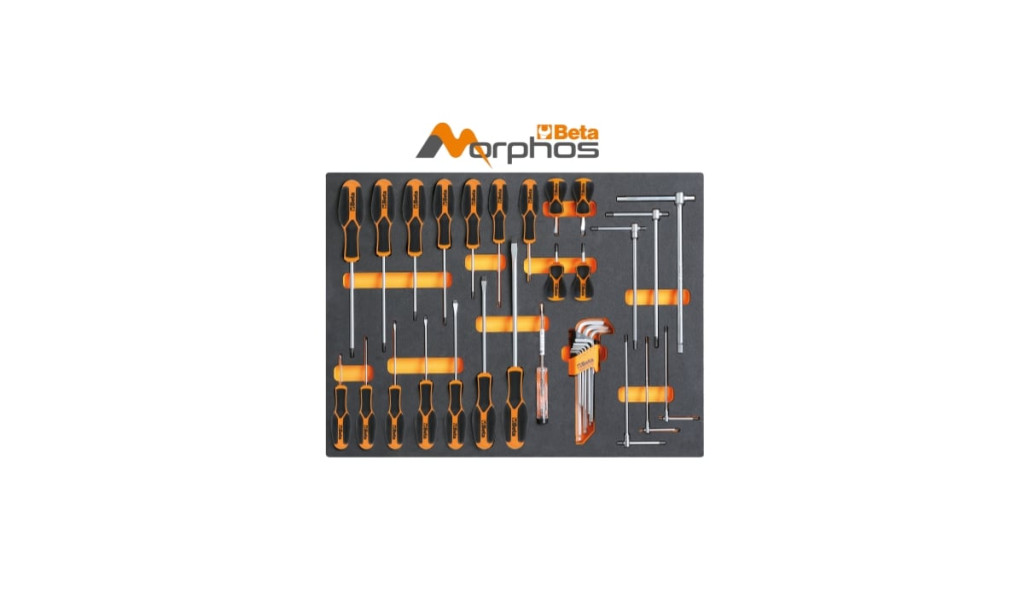 EVA habszivacs tálca Morphos csavarhúzókkal hasítottfejű és Phillips® csavarokhoz, és imbuszkulcsokhoz