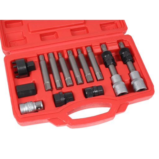 A készletben található imbusz, torx és XZN (spline) bitfej generátor szereléséhez 1/2" crowa befogással.