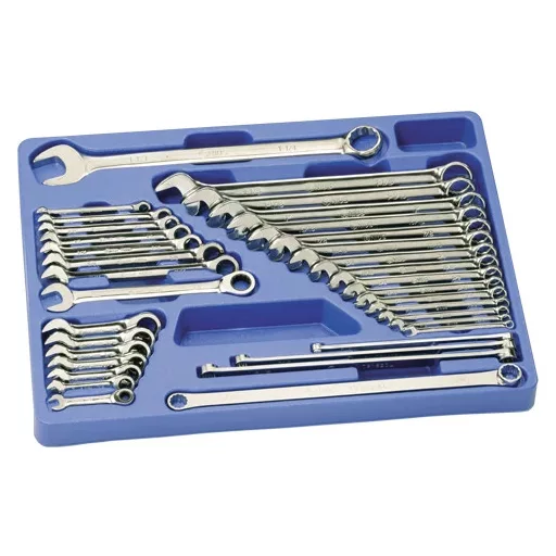 35 darabos csillag-villáskulcs készlet 1/4" - 1-1/4"-os kiszerelésben Genius szerszámos kocsik kihúzható fiokjába kialakítva