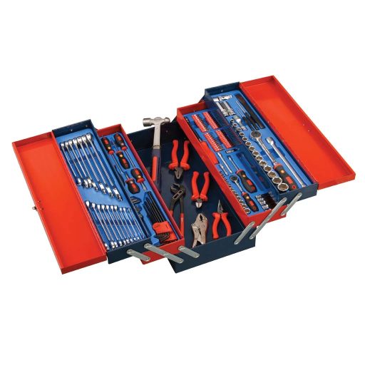 Harmónika kialakítású hordozható, profi szerszámos láda 142 db-os Genius szerszámmal együtt.