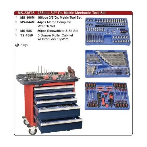 MS-236TS | Szerszámos kocsi gyári-felszerelt 236 db-os 5 fiókos - Genius