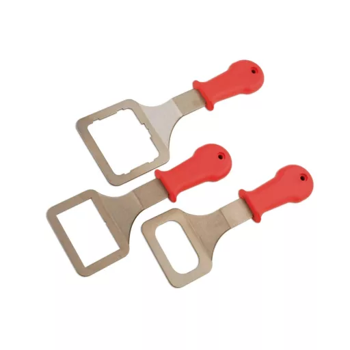 A három darabból álló szerszám olyan eszközöket tartalmaz, amelyek segítségével eltávolíthatjuk a modern autókra szerelt szenzorok többségét.