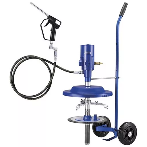 Kivitel: Gurítható kocsival, pneumatikus motorral és pumpával. A nyomásáttétel 50:1, 360° szögben elforgatható csuklós nagynyomású kenőpisztollyal, fúvókacsővel és fejjel, 2 m hosszú nagynyomású tömlővel és követő dugattyúval. 6 mm sűrített levegő tömlőcsatlakozó. Szállítási teljesítmény 1100 g/perc.