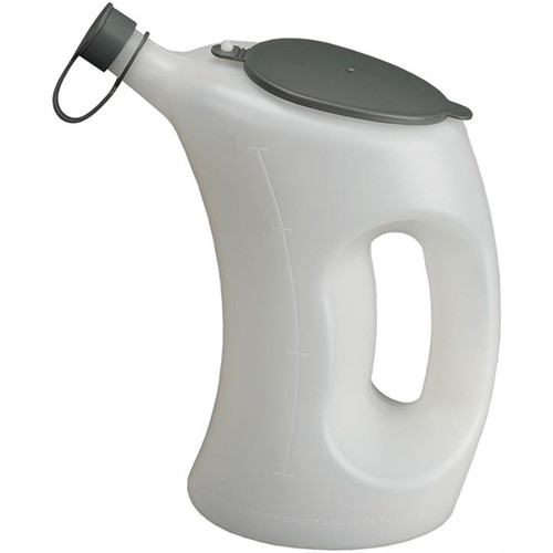 Kivitel: Olaj-, sav- és üzemanyagálló polietilénből, törésbiztos és stabil, fedéllel. Kiöntőcsőrrel és mérőosztással.