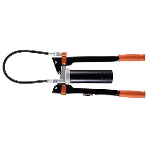 Alkalmazás: Teljes mértékben rugós mechanika nélkül működik. Egyszerűen tolja be a kartust, helyezze be a zsírkövető dugattyút és kezdje a munkát. A zsírpréselő fejben keletkező vákuum miatt a dugattyú magától felfelé mozog. A változó löket elv következtében a zsírzóprés a kar minimális elmozdításával is könnyen kezelhető.